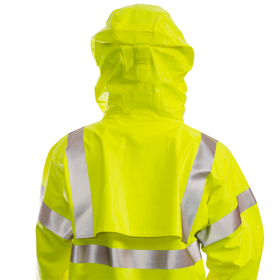 Revolutionary Quad-Hazard® technology delivers high visibility, liquidproof, arc flash and flash fire protection. Thermo-Grid® construction helps block out heat energy while the flame-resistant PVC coating on Nomex® provides 100% liquidproof protection in a soft, lightweight jacket.
