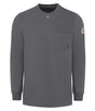 Meet the most comfortable FR long sleeve T-shirt you'll ever wear. This CAT 2 AR/FR, NFPA® 2112 compliant tee features a heat seal Bulwark® triangle centered at neck to show wearer has on FR undergarment.