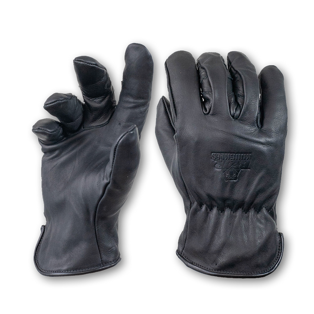 Fleece-Lined Water Resistant Black Leather Cowhide Driver Gloves - D409