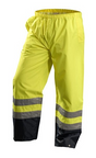 Class E garments are worn with Class 2 or Class 3 garments to achieve an overall rating of Class 3. Pants cover the front and back of the legs from the hip to the ankle. Rain gear keeps workers dry when working outdoors or in damp and wet environments.