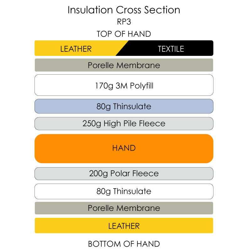 - 170g Insulation on top of hand